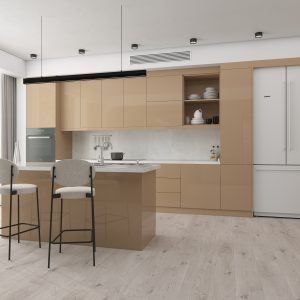 Acrylic panels are manufactured by thorough application of acrylic foil to the raw surface of one-sided laminated MDF panels. They have a glossy surface and are fully resistant to water and moisture, not to mention that they are easy to clean. Due to the protective UV top layer, the color and the glossiness of their patterns are preserved for many years, granting their proud owner an always brand-new appearance. Acrylic panels do not contain any carcinogenic or hazardous substances. This product finds its perfect fit in kitchens, bathrooms, living rooms, bedrooms, hotel furniture, office furniture, cabinet doors, and wall linings.
